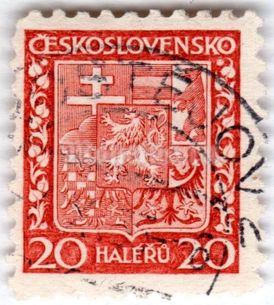 марка Чехословакия 20 геллер "Coat of Arms" 1929 год Гашение