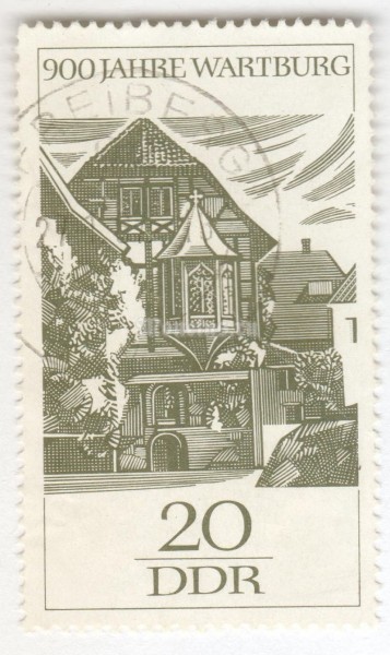 марка ГДР 20 пфенниг "Wartburg, Gothic Bailiwick" 1966 год Гашение