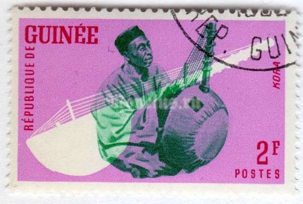 марка Гвинея 2 франка "Musical instruments" 1962 год Гашение